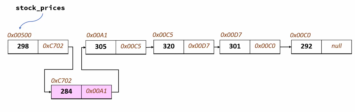 This allows us to very easily add new elements to the list without having the overhead of transferring the entire array to a new memory location: