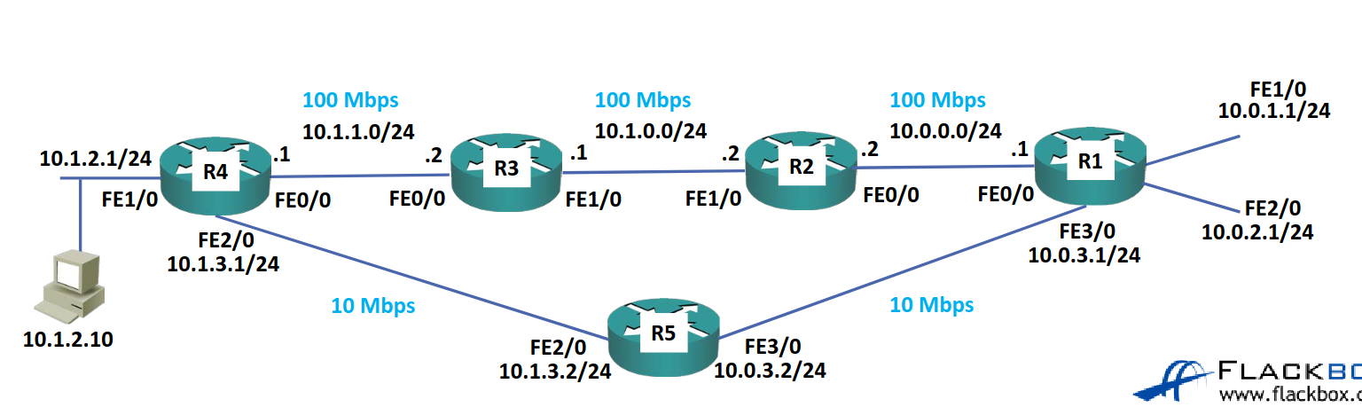 The issue is that if we place a management interface on R1 FE0/0 and that link goes down, we cannot connect to 10.0.0.1 anymor (and likewise for FE3/0).