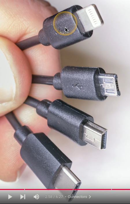 Apple has a lightning 8-pin proprietary connector. It has the advantage of a higher power output than a micro-USB.