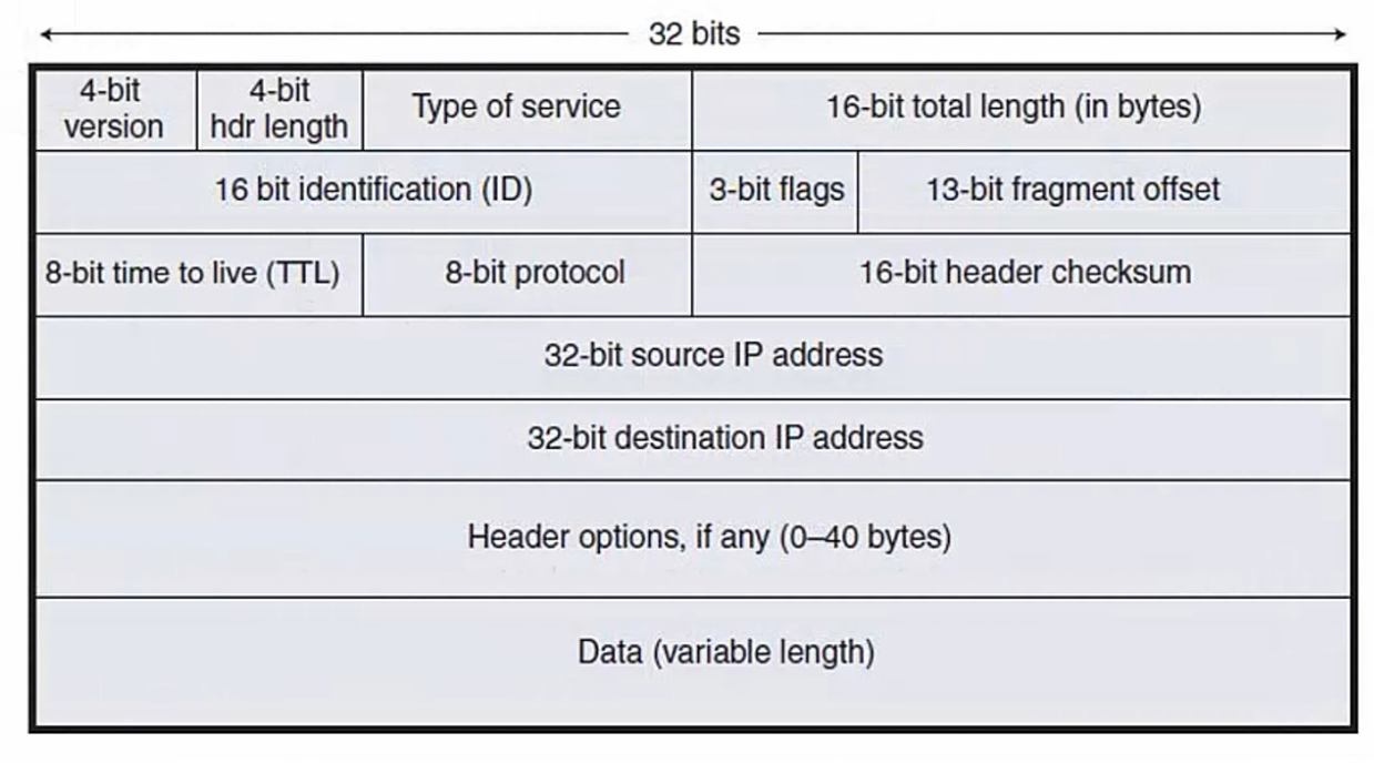 | 4-bit hdr length | Describes the length of the header for some optional info |
